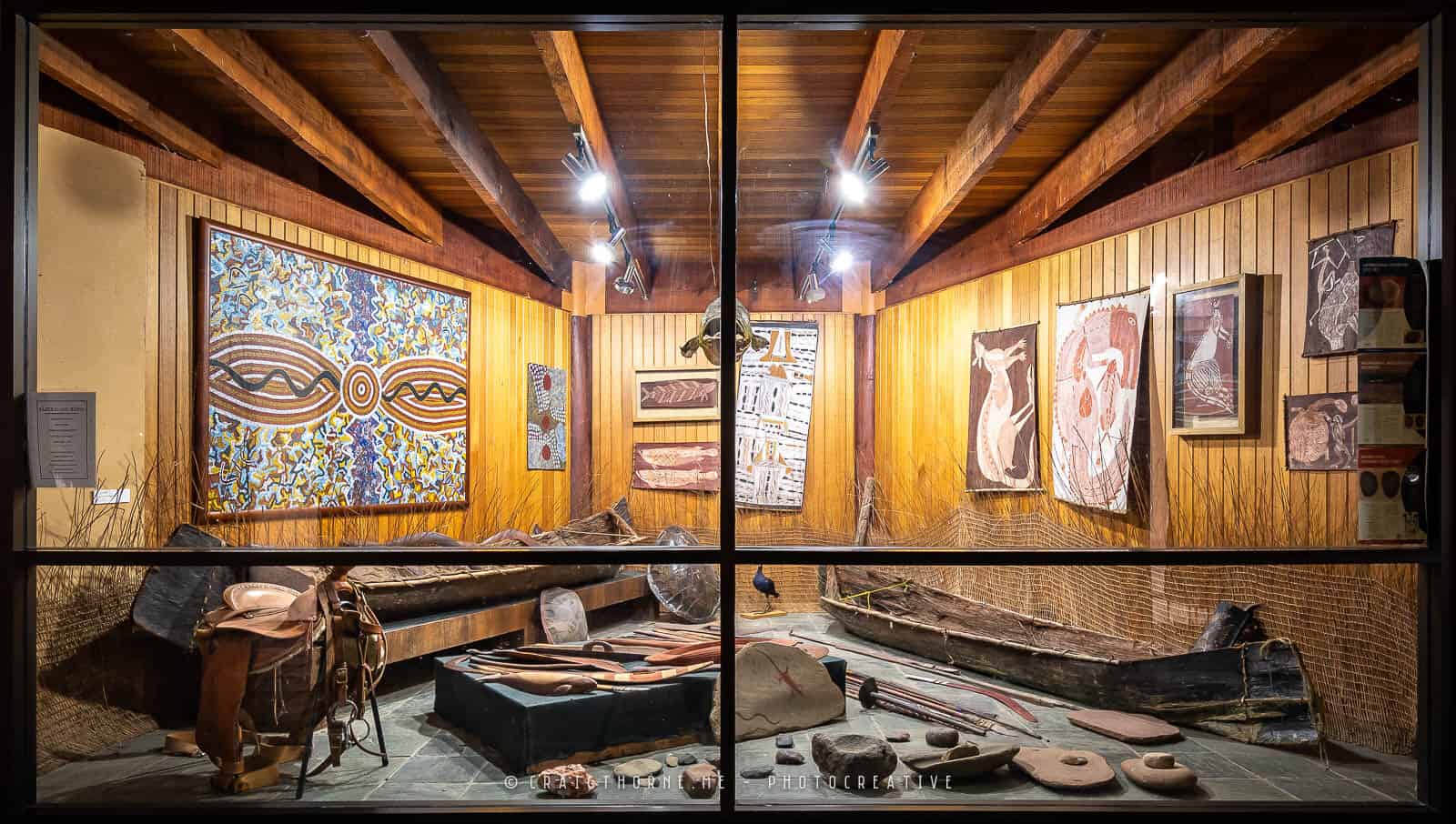 Textiles from Tiwi Designs and Ernabella, woodwork from Maraku Arts and Crafts, bark paintings from Oenpelli, Maningrida, Ramangining and Yirrkala, headdress and hair string skeins from Mornington Island; necklaces from Tasmania and emu eggs and pendants from Western Australia make up just some of the incredible collection of artefacts of national, state and local significance.
